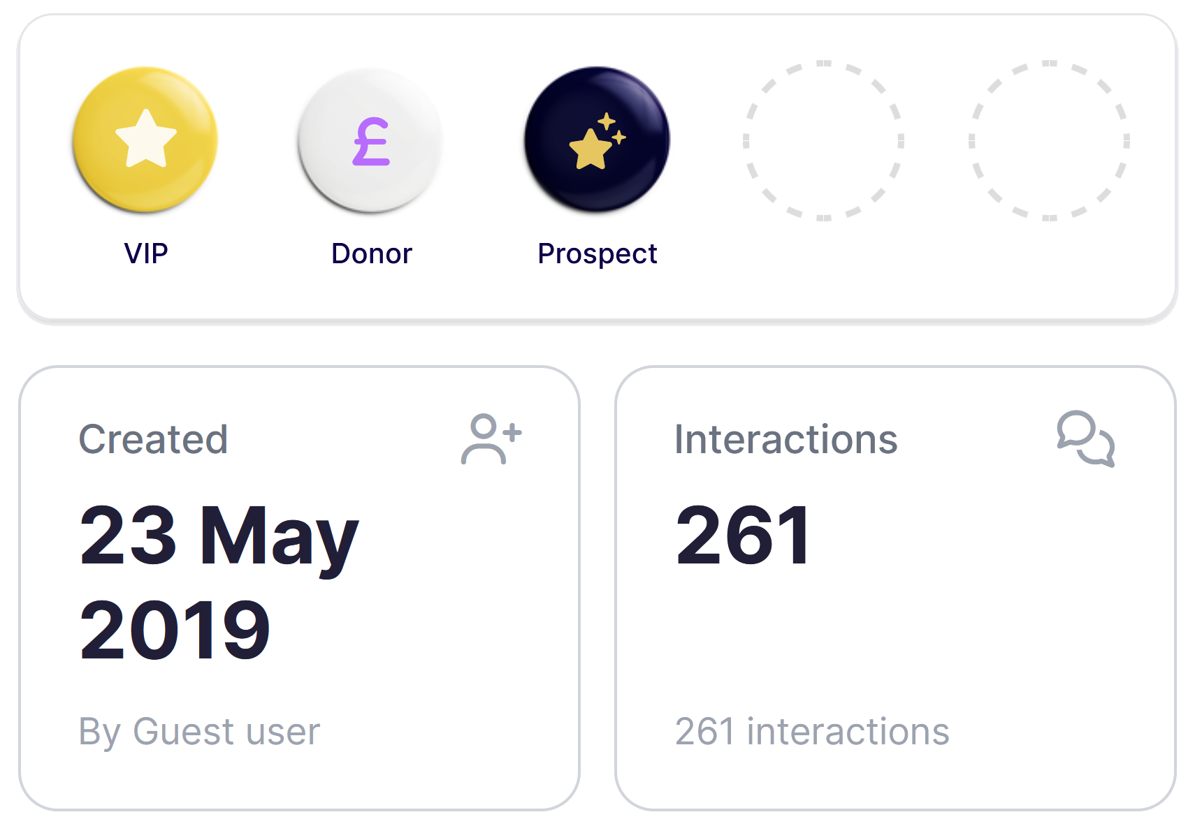 Profile pages now open with a fresh Insights panel — a snapshot of the things that matter most about a person or organisation. Created date, last contact, total donations, membership status, open cases and interaction count, all surfaced in one place without having to dig through the profile. It's a small change that makes a big difference when you're mid-conversation and need context fast.